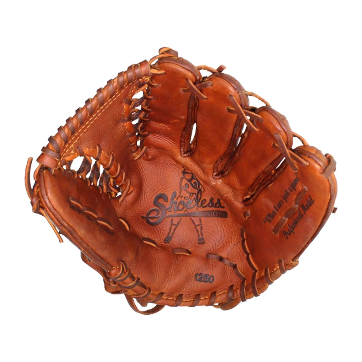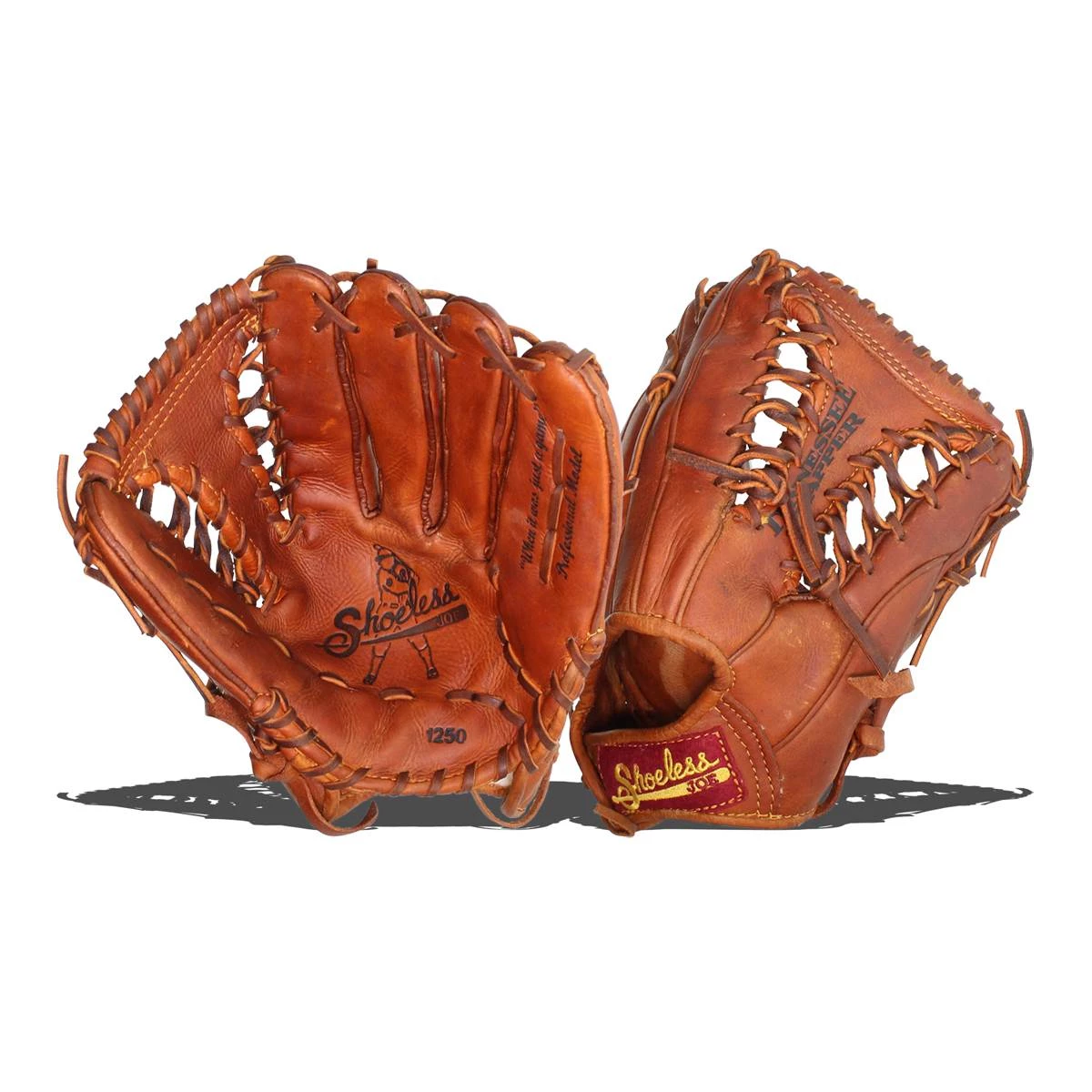 Shoeless Joe Gloves give a player the quality, feel and style of the gloves used by professional ball players over the last 100 years. You can choose glove models used in the first half of century in the Golden Age Series or today`s models in the Professional Model Series (1250TT). The Shoeless Joe gloves are individually hand-cut and sewn from Special Aged Antique Tobacco Leather Hides. Shoeless Joe gloves are then hand-rubbed with old time ingredients to soften the leather before they go through their breaking in process that leaves the Glove with a beaten up and `Game Worn` look and feel, of a broken in glove. Thus each glove is unstructured giving it its own unique feature. Players can choose to play with an old time or modern day web without having to change to another model. A great play is lived only once, but your glove, you`ll keep it forever. If you end a game with a clean uniform our gloves are not for you. Shoeless Joe: When it Was Just a Game! Need help? Call JustBallGloves at 866-321-4568. Free Shipping!